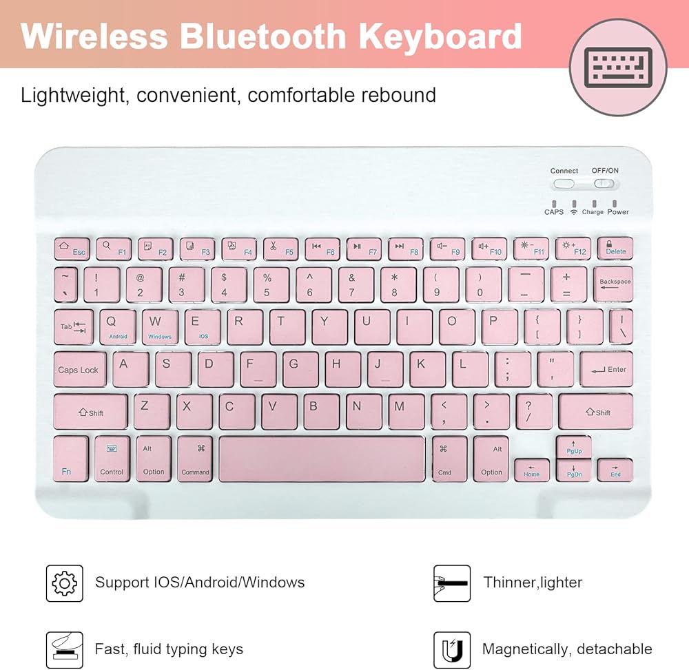 Keyboard Case with Touchpad and Bluit-in Pen Holder:With multiple touchpad gestures and mouse button, you can work the tablet as a laptop. And the case is designed with a pen slot, you can also put your stylus pen in it. It is convenient to carry on business trip or travel and fully meets your work or study needs. Innovative magnetically detachable wireless keyboard design makes it easy to use(the connection range is up to 10 M).
