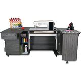 Looking for adaptability, innovative storage solutions, and miles of worksurface? Say G'day! to Sydney, our premier quilting and embroidery cabinet. With a rear quilt leaf, side leaf, tri-fold door with flip-up tabletop, pressing mat, drawer cover, embroidery spool holder, removable drawer tray insert, and innovative space for storing your embroidery arm, this cabinet can hold it all and do it all. We designed Sydney with the largest premium machines in mind – the extra-large lift opening (available with hydraulic or electric lift hardware) accommodates the biggest premium machines on the market (up to 65 lbs). You can be sure that whatever project you're working on, Sydney can handle it. Heavy duty locking casters move smoothly, locking drawers keep your tools and notions hidden safely away, and the included sewing well cover panel lets you maximize your usable work surface when your machine is tucked away inside the cabinet. This big, beautiful cabinet offers tons of work surface with both leaves and tabletop extended, and folds down to a 61 x 27-inch space when not in use.