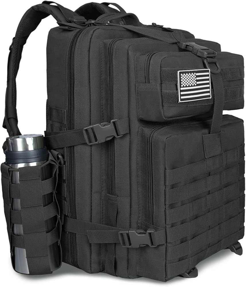 【45L High Capacity Tactical Backpack】- Military Tactical Backpack Size 18.89 "x 11.8" x 11.8 ", Weight: 2.71 lb, large space, backpack can unfold 90-180 degrees, accommodate 3 days of travel equipment storage, Hunting, traveling or as a day work bag, this tactical backpack can meet your needs.PS: without Bottle Holder