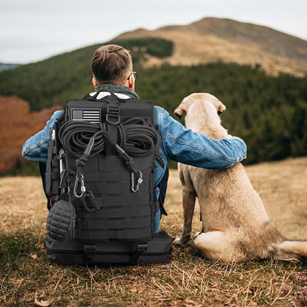 【Backpack Unique Process】- The tactical backpack is made of high-density 900D Oxford cloth high-density material, Paired with heavy-duty zipper, The triple stitching process greatly increases the durability of the backpack and can carry more items. The streamlined mesh backing, based on the ergonomic design, has uniform force and will not be tired for a long time to carry,The belt (adjustable length) can better hold the pack in place.