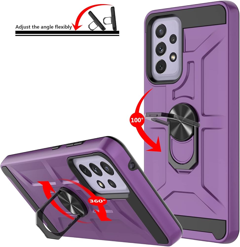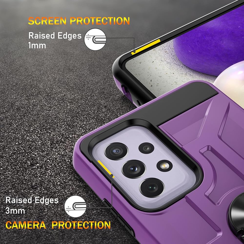 Gamemi for Galaxy A52S Case, Galaxy A52 4G/5G Case with 3X Tempered Glass Screen Protector, Built-in Ring Kickstand and Magnetic Car Mount Shockproof Dropproof Military Grade Armor Rugged Case, Purple