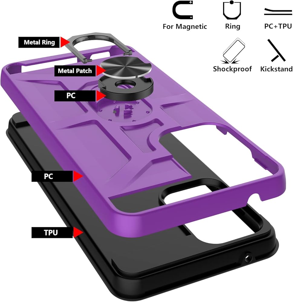 [360 Degrees Rotation Ring Holder Kickstand]: Metal kickstand can rotate 360°, easy to rotate and sturdy on the case. Built in kickstand gives you the convenience to watch videos and movies hands-free with desired comfort and stability. Besides, built-in metal sheet can be directly adsorbed to the magnetic car mount holder. (Not includes the magnetic car mount holder).