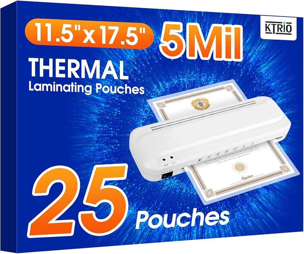 KTRIO 5 Mil Laminating Sheets, Hold 11 x 17 Inches Sheet, 25 Pack Thermal Laminating Pouches, 11.5 x 17.5" Laminate Sheets for Laminator, Clear Lamination Sheet Paper, Office School Home Supplies