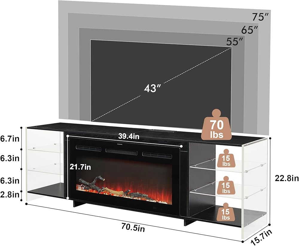 Fireplace Dimension:39.4”L*21.7”H*8.9”W
