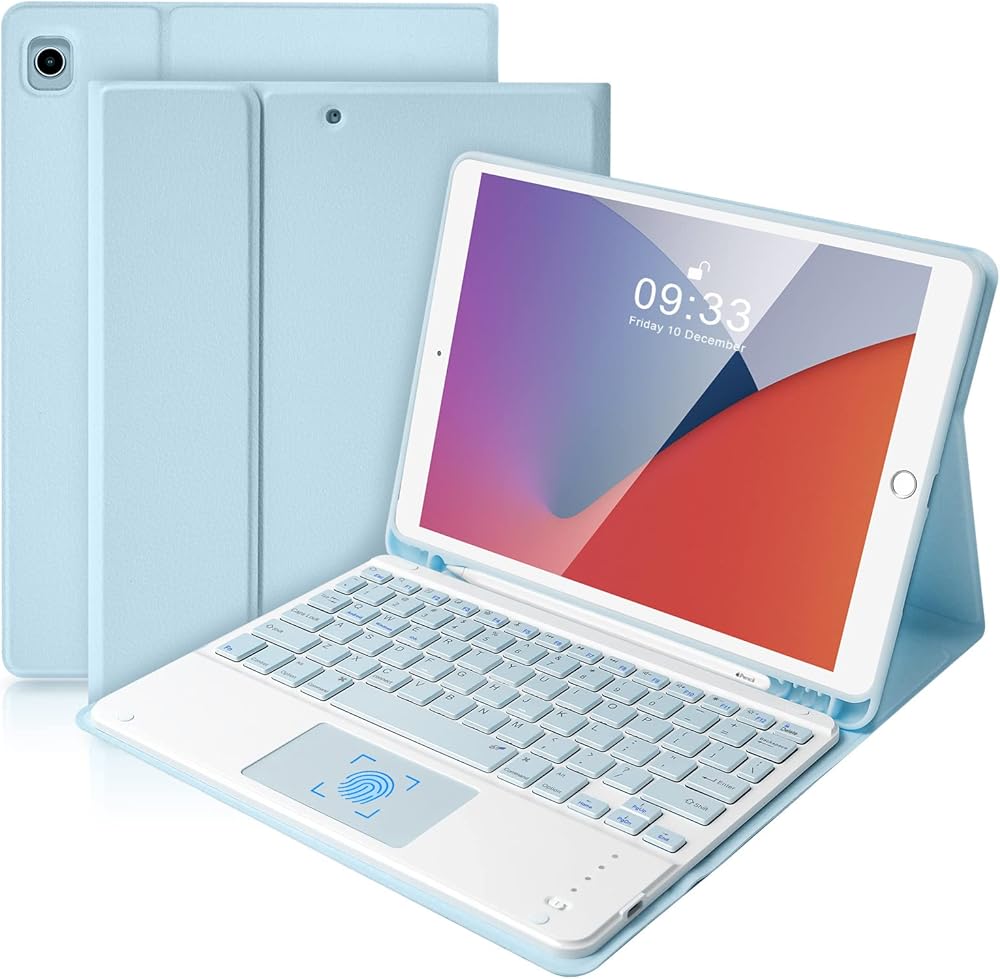Keyboard Case with Touchpad and Bluit-in Pen Holder:With multiple touchpad gestures and mouse button, you can work the tablet as a laptop. And the case is designed with a pen slot, you can also put your stylus pen in it. It is convenient to carry on business trip or travel and fully meets your work or study needs. Innovative magnetically detachable wireless keyboard design makes it easy to use(the connection range is up to 10 M).
