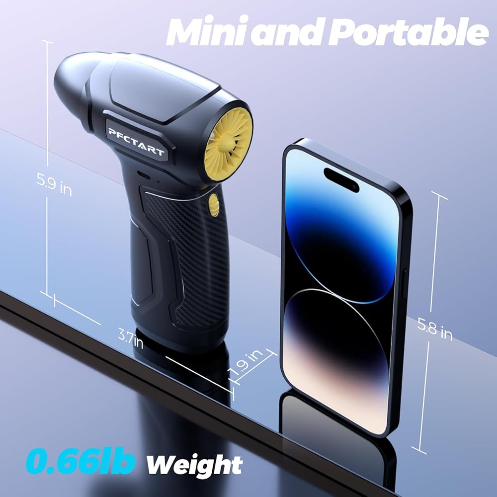 Upgraded Powerful Motor: PFCTART compressed air duster features a high-efficiency brushless motor that reaches speeds of up to 200,000 RPM, delivering 200 G of blowing force. It easily clears dirt and debris from keyboards and other electronics, making it perfect for home, office, or car cleaning