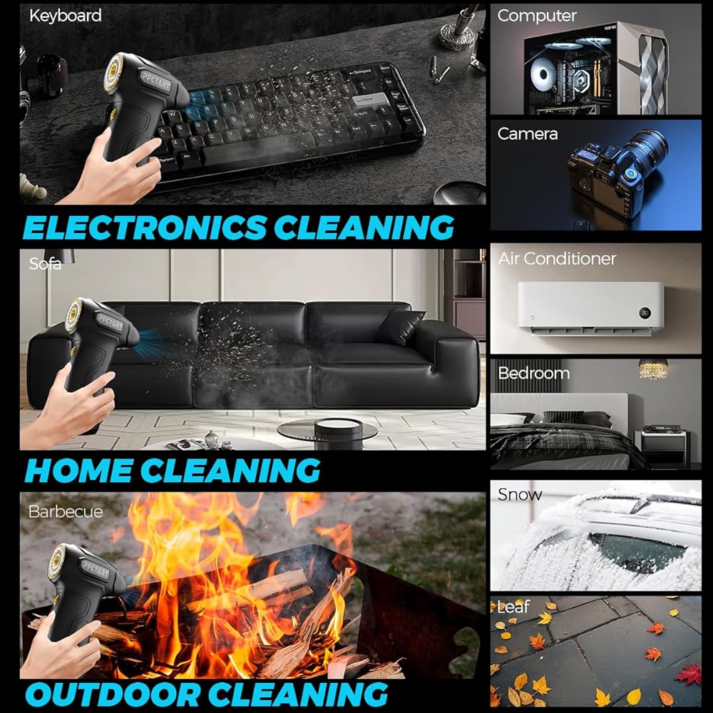 Alternative to Canned Air: Unlike traditional canned air, our turbo fan offers an energy-efficient, rechargeable solution without the risk of liquid or ice formation. It safely cleans electronics and protects against potential liquid damage