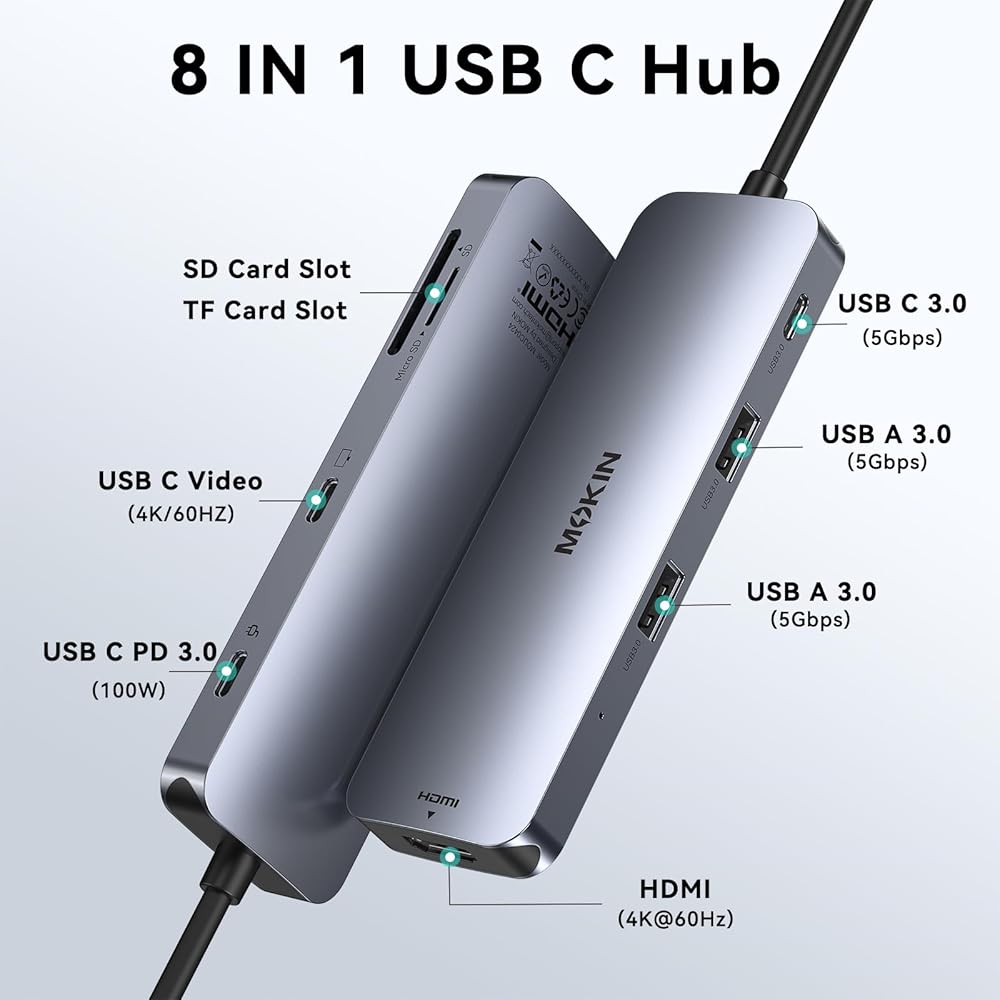 PORTABLE 8-IN-2 USB-C HUB:Designed for MacBook Pro 2020 2019 2018 2017 2016 and MacBook Air 2020 2019 2018. With advance chip, expand your work opportunities and provide you more stable performance. No need any drivers or software, just plug and play. Convert your macbook usb c port into 6 ports:2x4K 60Hz hdmi, 3xusb, sd/tf card reader, 100w pd. Notes:Only Support MacBook Pro/Air with 2 thunderbolt 3 port on the one side