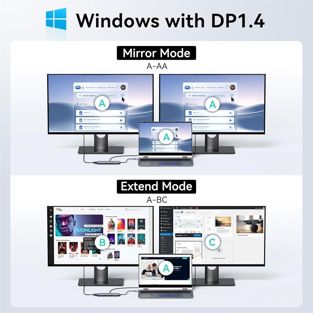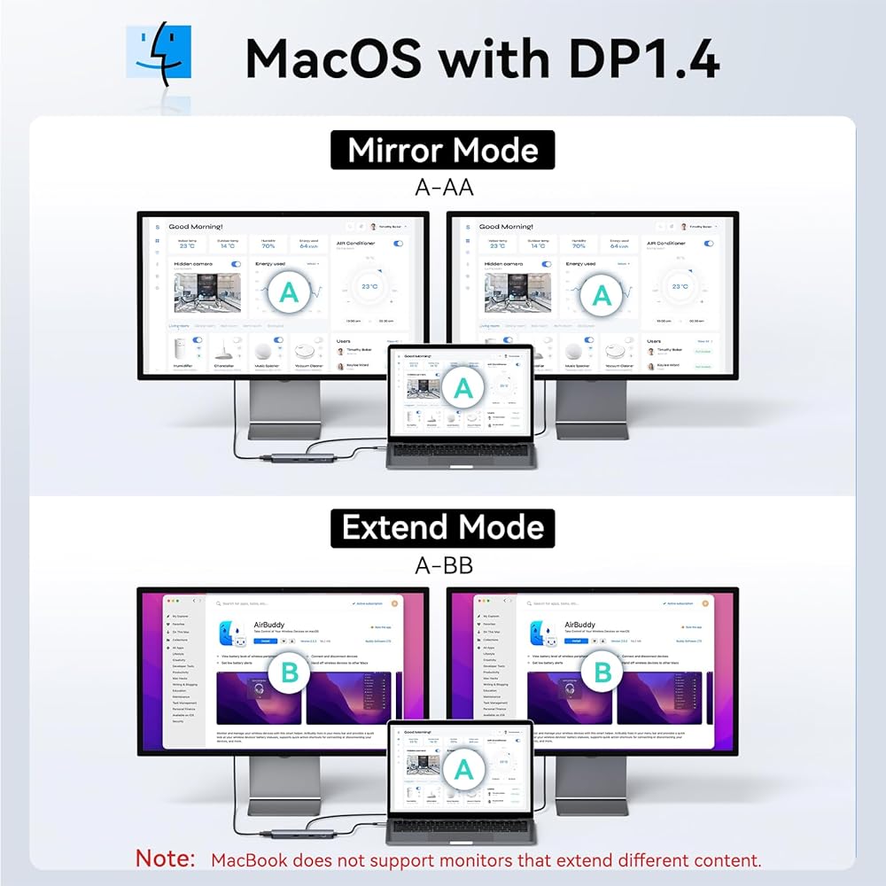 STUNNING 4K VIDEO AND 2x HDMI:Use HDMI port to enter mirror mode for Mac OS or extended mode and transfer vivid 4K Ultra HD @ 60Hz or Full HD 1080p @ 60Hz video with 3D effect from laptop screen to a monitor, projector, HDTV, etc. Stream movies, presentations or video games on your monitors in one click: 2 HDMI ports can be used simultaneously, but with only one 4K monitor