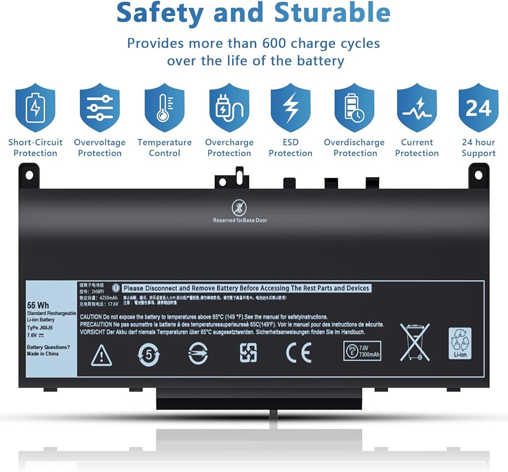 【Safety and Stability】Our WDX0R replacement laptop battery is highly compatible with the originals. Compliant with CE/FCC/ROHS/UL certification standards and tested for stability under high load and daily wear and tear.Includes circuit protection against overcharging, overheating, and voltage fluctuations. Provides more than 600 charge cycles over the life of the battery