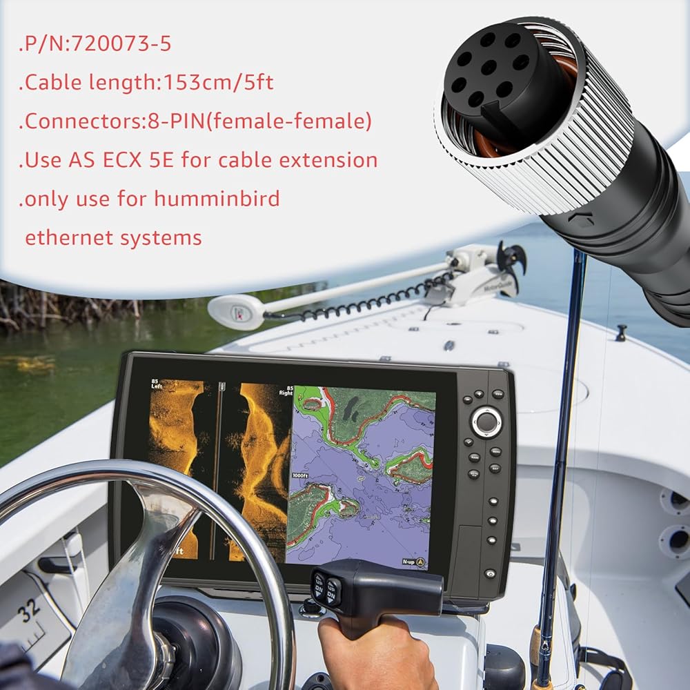 Product Usage: 720073-5 AS EC 5E Ethernet Cable Extension Cable - Suitable for connecting Humenbird Ethernet systems on Lowe Boats for normal use of fish detection equipment in marine environments