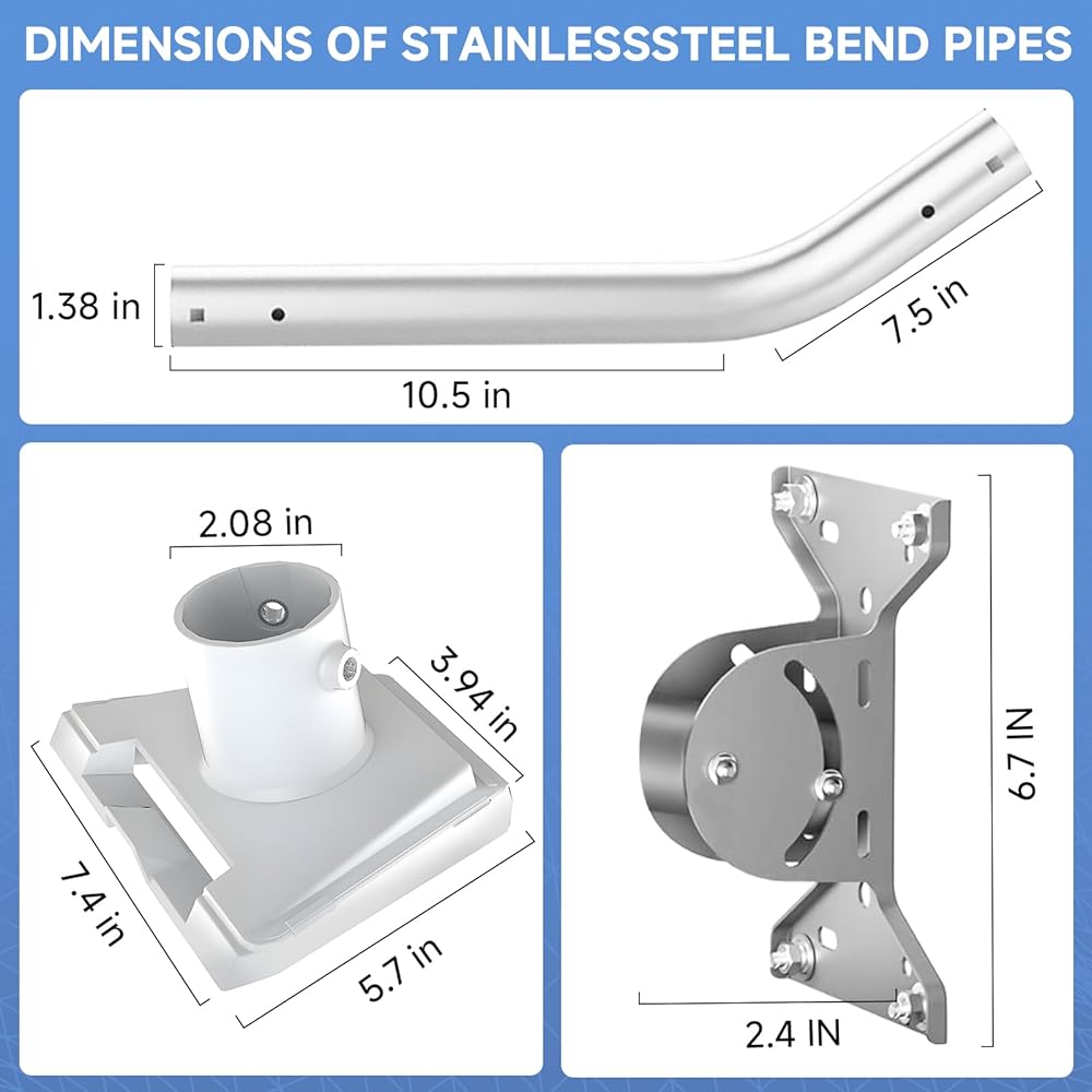 【Extensive Compatibility】This Starlink Pole Mount kit is designed to accommodate up to a Diameter 1.38" and 2.37" , ensures compatibility with a wide range of pipe sizes, offering flexibility in installation. The starlink gen3 adapter is both stable and easy to align, allowing the high-performance components of the Starlink Pole Mount to be flexibly positioned. Simply insert the Starlink Pole Mount kit bracket into the antenna slot and tighten the two retaining screws.