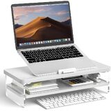 Convenient Storage: The stand elevates your laptop by 5.5 inches and includes a built-in drawer for small item storage, ensuring an organized workspace while maintaining stability.