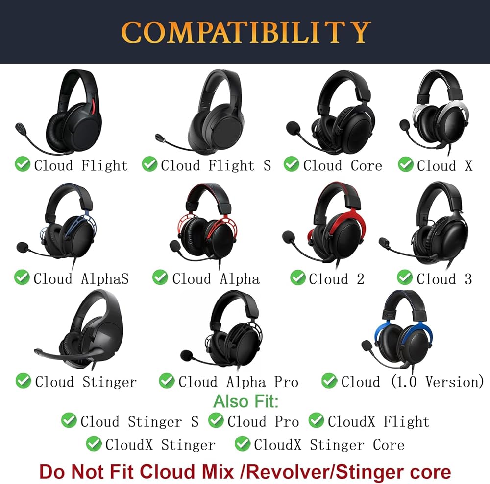 🎧Compatible with Various Headphones: Our ear pads are designed to fit a range of models including Cloud 1/2/3/Pro, Cloud Core, Cloud Alpha/Alpha S/Alpha Pro, Cloud Flight/Flight S, Cloud Stinger/Stinger S, CloudX, CloudX Stinger, CloudX Stinger Core, CloudX Flight. Do not fit Cloud Mix, Cloud Stinger Core, Cloud Revolver Series. Please confirm compatibility with your specific headset before making a purchase.