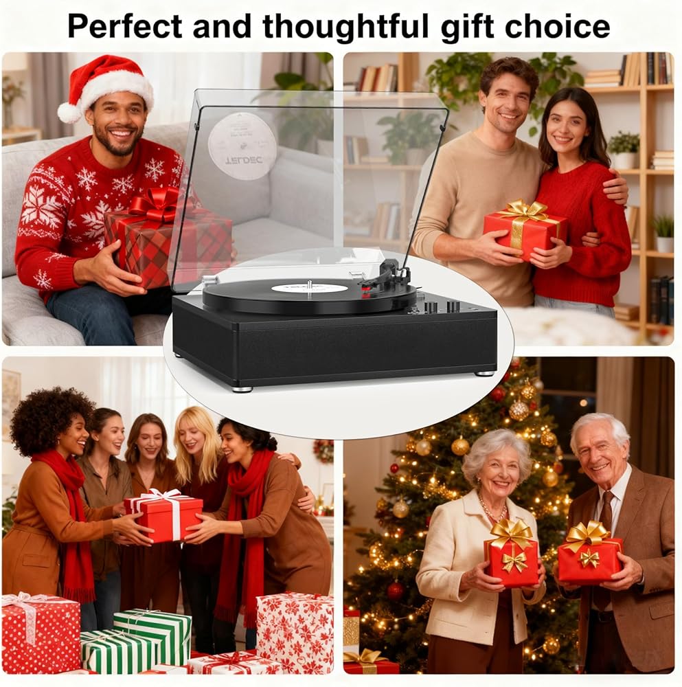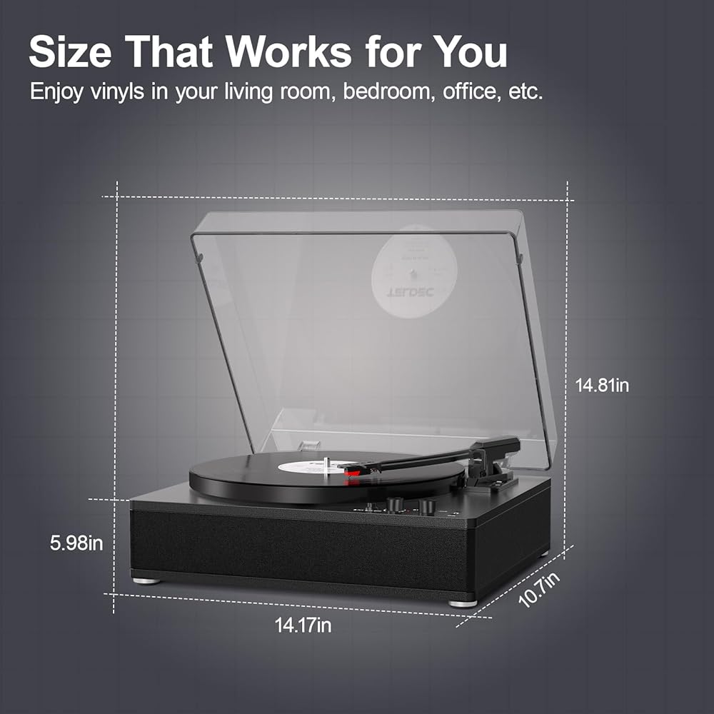 Vinyl Record Player with Stereo Speakers, Full-Size Turntable for Vinyl Records, Bluetooth Input & Output, 3-Speeds LP Player, Adjustable Counterweight, AUX Input, RCA Output, Retro Record Player