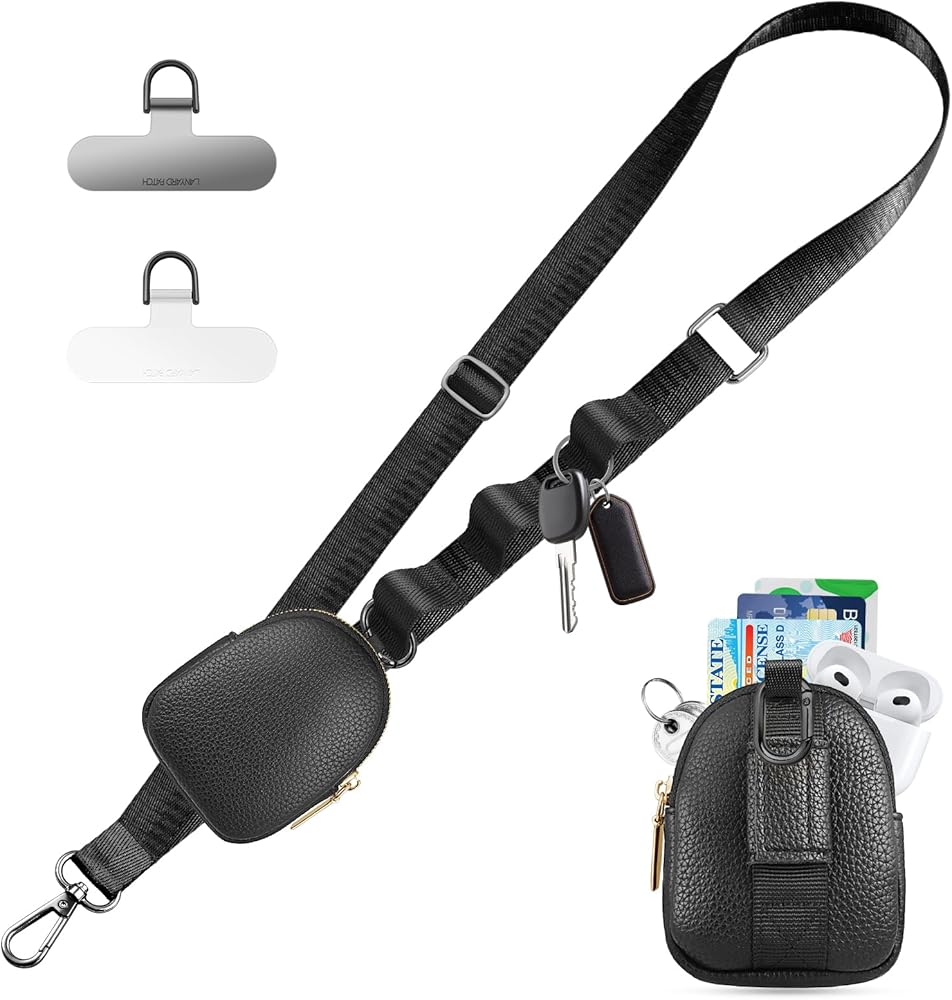 [Stylish Clip and Go Phone Strap with Wallet] This phone strap set includes a sleek, compact pouch that perfectly complements the iPhone lanyard. Crafted from microfiber leather.Its unique Velcro fastening at the back keeps the wallet firmly in place on this iPhone strap, unlike typical swinging pouches. Measuring 4.13" × 3.15" × 0.94", it offers enough storage for headphones, lipstick, and other travel essentials, not only keys or cards. This lanyard wallet is our special design in the market.
