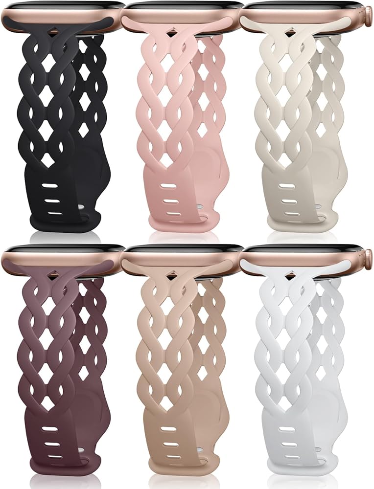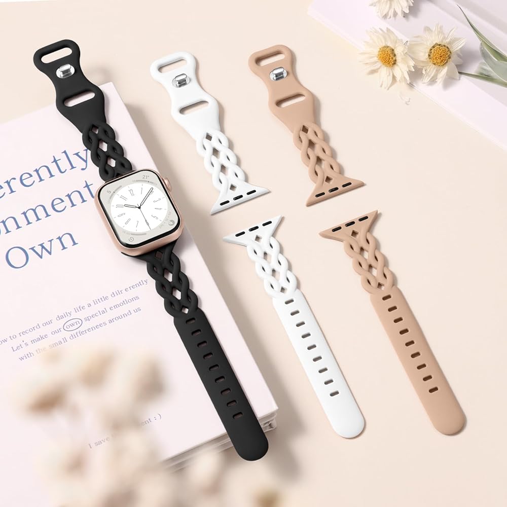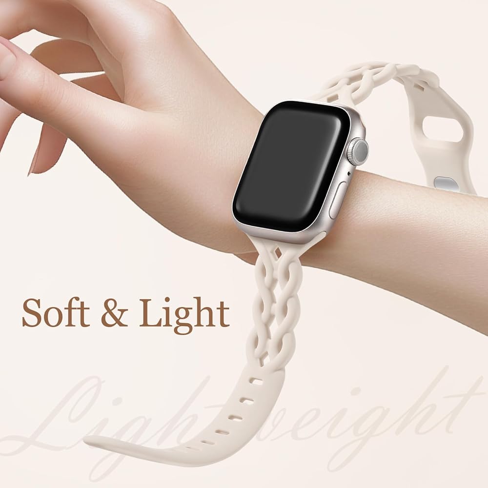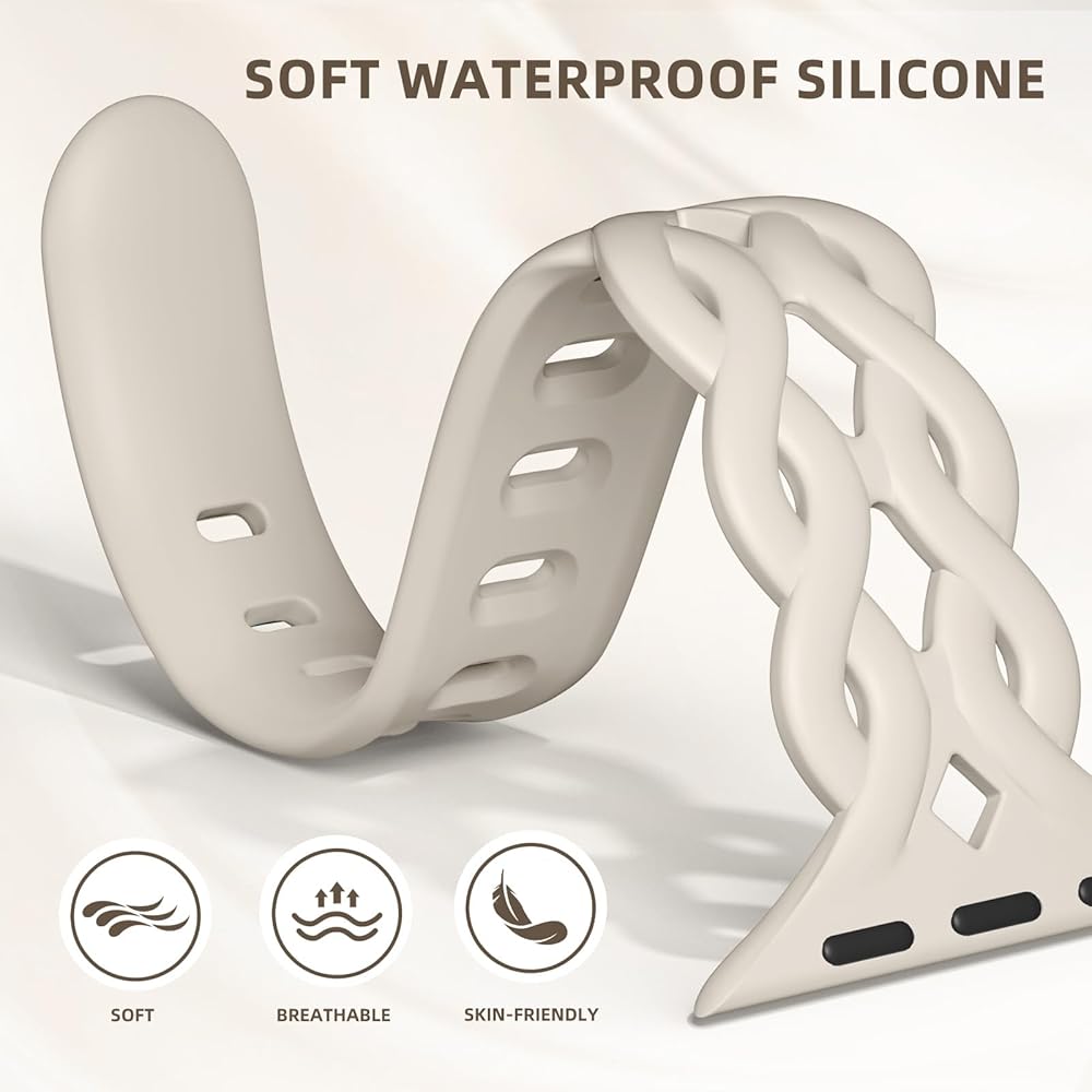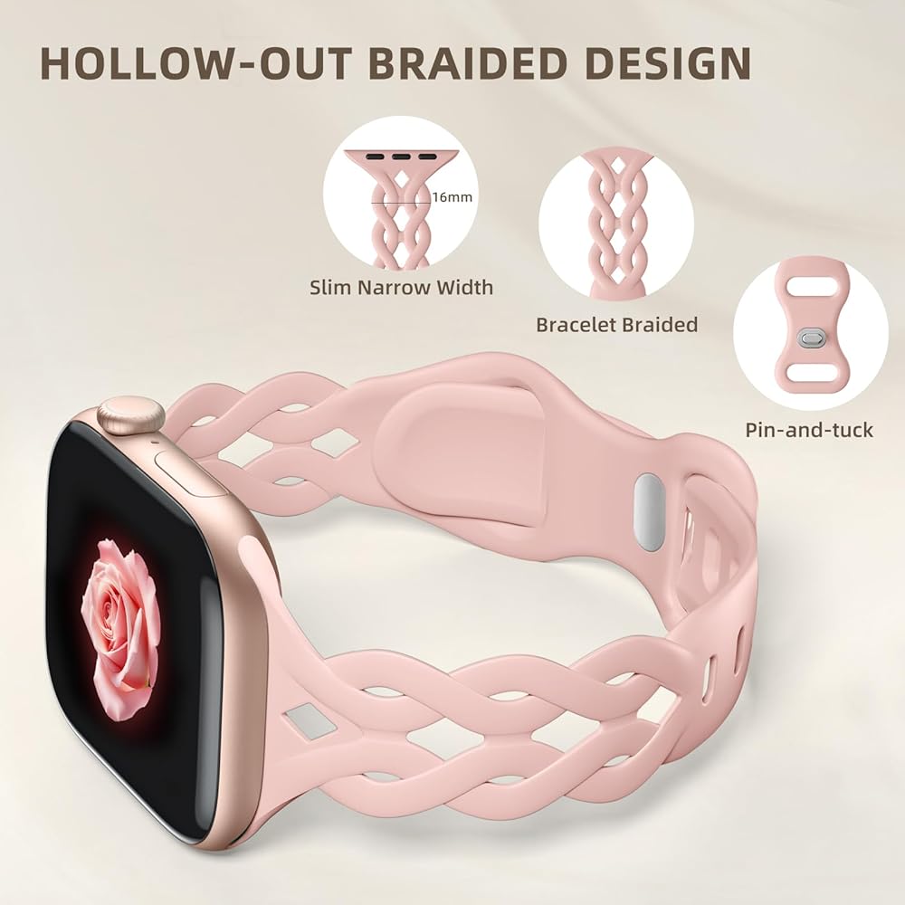 Comfortable to Wear:Our iWatch bands for women are crafted from soft, smooth, skin - friendly and durable silicone. Combined with the hollow - out braided design, it prevents skin irritation and offers a breathable, lightweight feel, making it a joy to wear on your wrist. Moreover, its waterproof and sweatproof properties ensure all - day comfort. It's perfect for workdays, workouts, and even for wearing during sleep at night