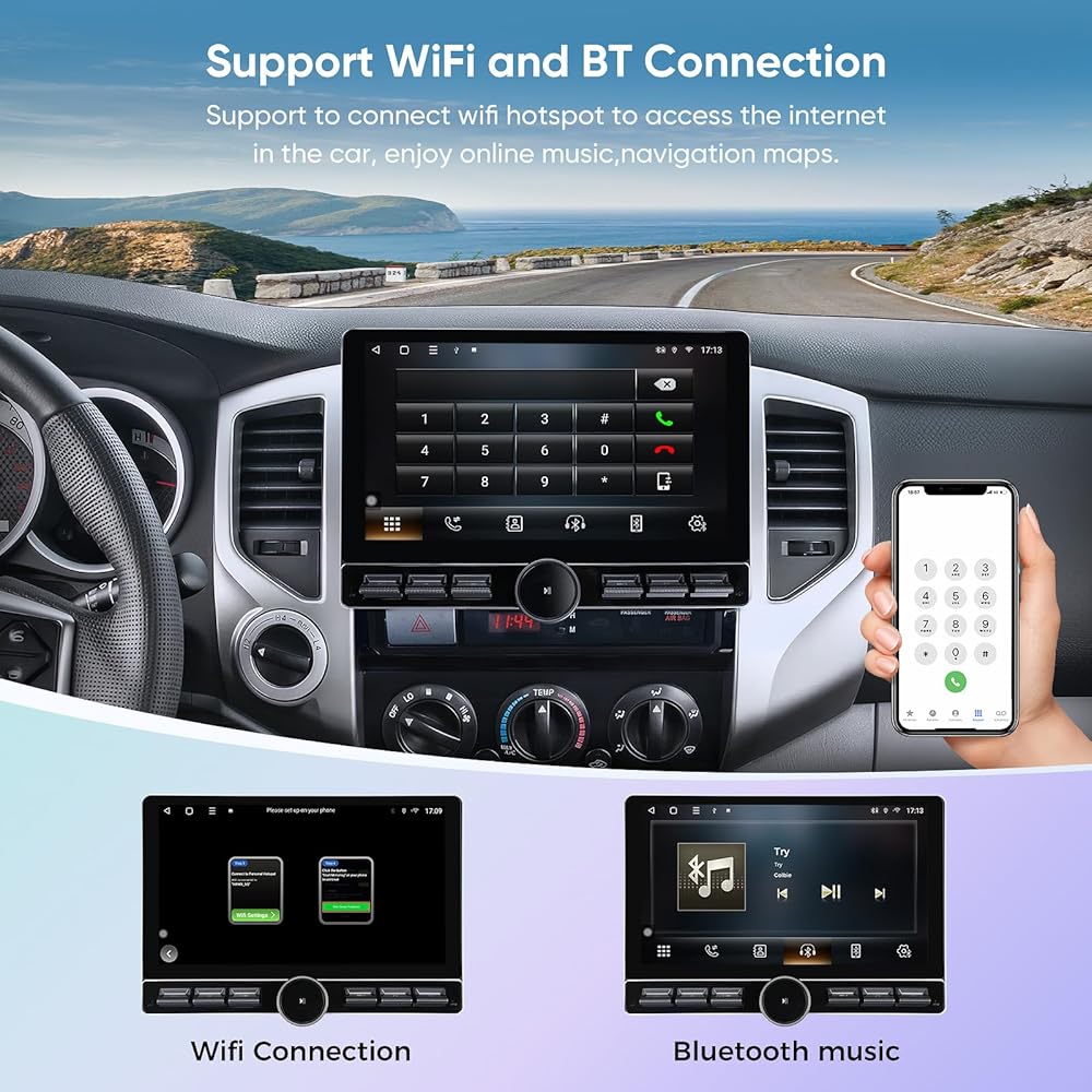 【Super Connection Speed Car Stereo Radio】Carplay&Android Auto signal flow is very stable, and 1080P video playback is not stuck at all. The wired/wireless mirroring function (Airplay+Android) can transmit signals with screen 4.0, and 1280 * 720 resolution can display the projection screen in HD. High-quality frame construction for Toyota Tacoma(2005-2015).