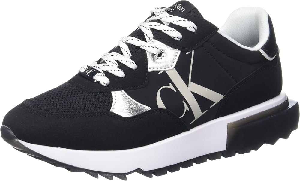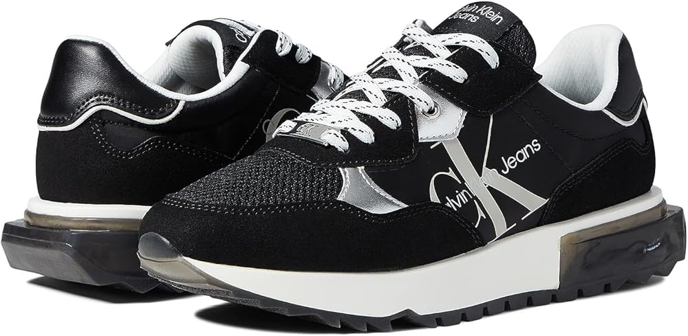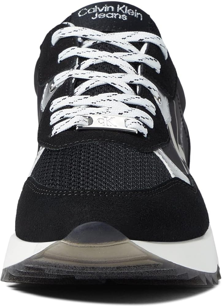 Classic and essential, the Calvin Klein Magalee sneaker is an elevated take on the retro lace up sneaker. Its detailed with color blocking and pops of color on the sole. The Calvin Klein Jeans logo is features on the side.