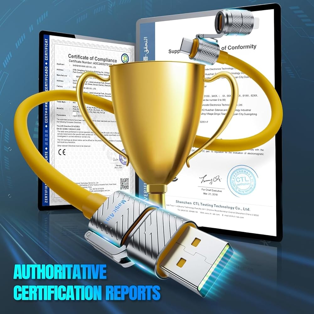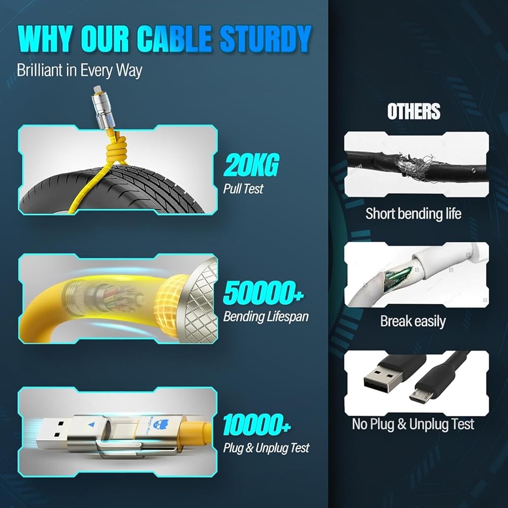 【What You Get】 Magic4in1 - 5.5FT 240W 4-in-1 Multi Charging Cable, a length suitable for any situation, so you no longer need to stay near a power outlet. Additionally, our reliable customer service is available 24/7—if you have any questions or issues, feel free to contact us. We guarantee resolution within 24 hours. Please note, the 240W Type-C cable can power laptops through the Thunderbolt port, but it is not a USB 3.0/4K cable. 【NOTE】Magic4in1 - 240W 4-in-1 Multi Charging Cable Cannot use Thick Phone Cases, But compatible with 98% of phone cases