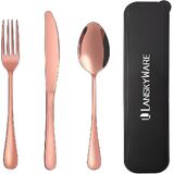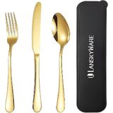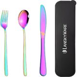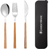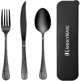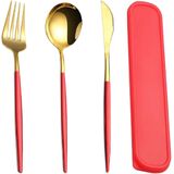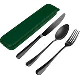 Portable Cutlery Set with Case: 3 pieces reusable cutlery set with case, consist of 1 Dinner Forks+1 Dinner Spoons+ 1 Steak Knives+1 portable carrying case