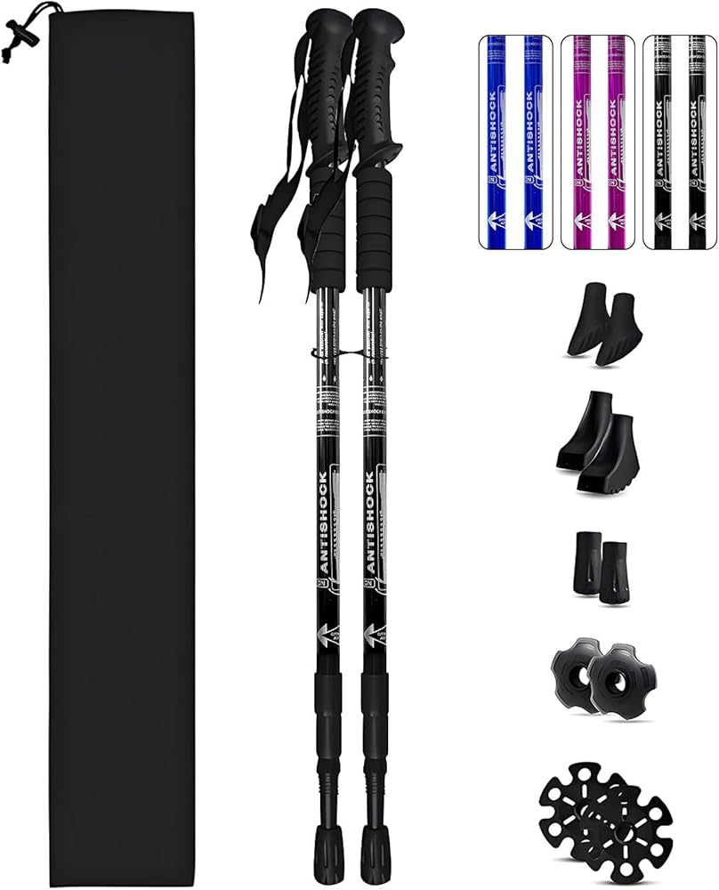 Trekking Poles, Adjustable Telescopic 3-Section Hiking Poles, Lightweight Aluminum Trekking Poles for Hiking, Backpacking, Anti-Shock Walking Sticks for Men Women Kids, 2Pack