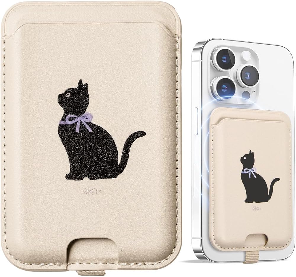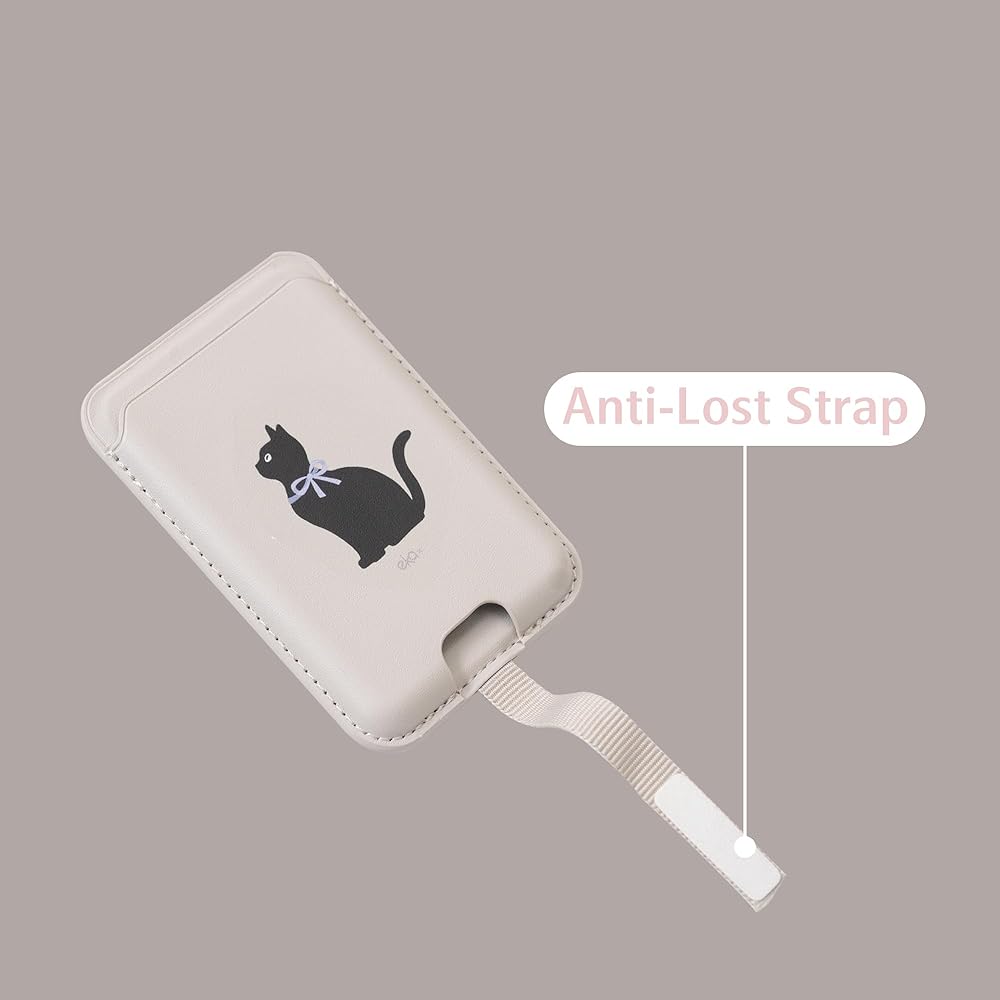Anti-Lost Magnetic Phone Wallet, Strong Magnetic Design, Compatible with MagSafe, Holds 1 Cards, Phone Wallet Stick on iPhone and Android Smartphones, (Black Cat, Pocket)