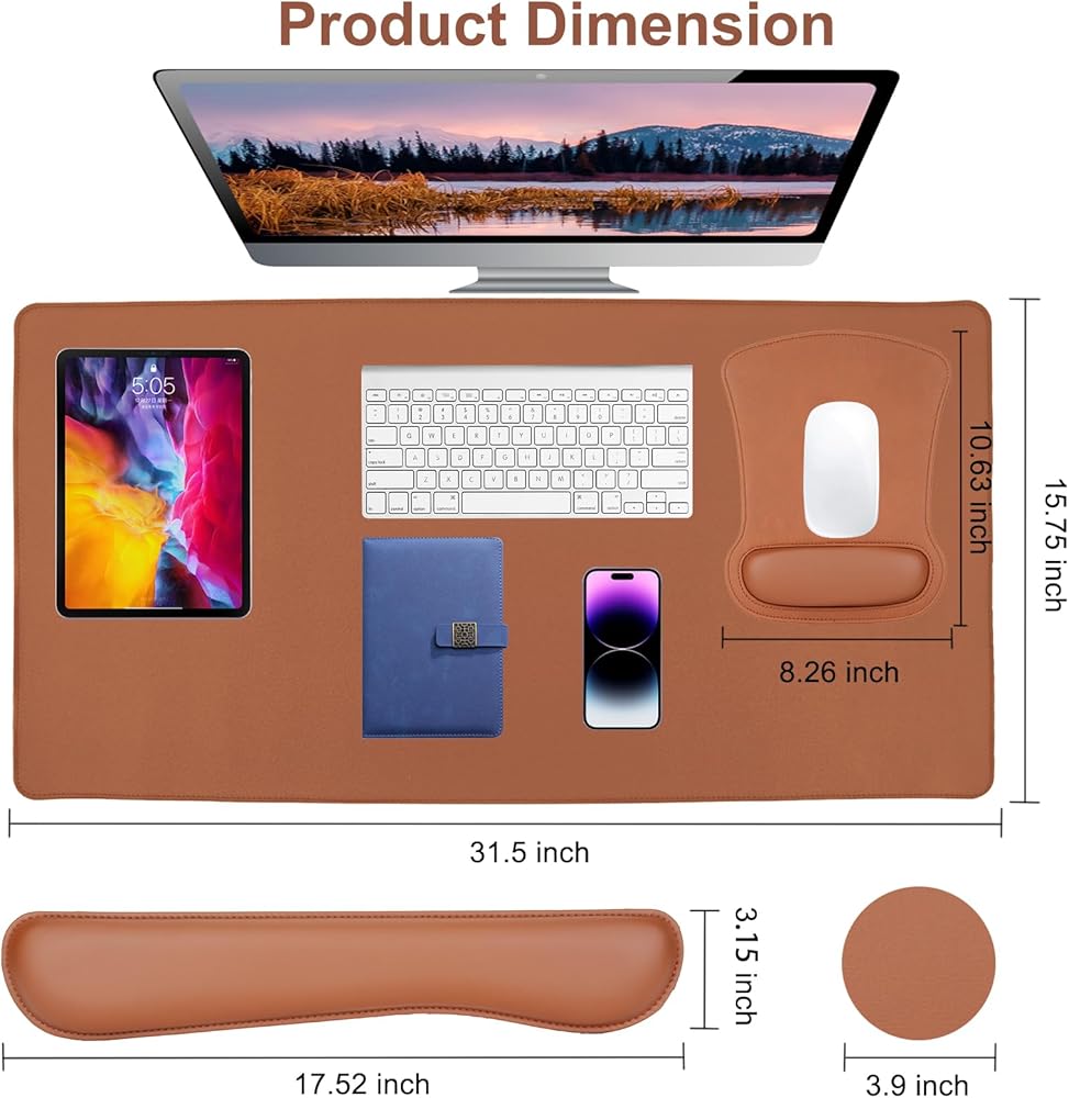 MOSISO Keyboard Mouse Pad Set, PU Leather Large Gaming Mousepad&Keyboard Wrist Rest&Mouse Wrist Rest&Coaster, Ergonomic Non-Slip Mousepad&Easy Typing Cushion with Memory Foam for Home Office, Brown
