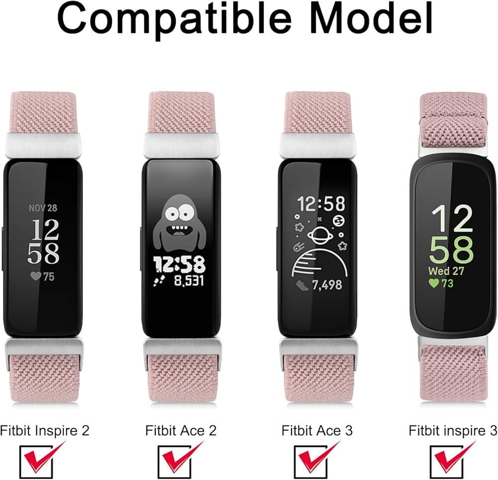 Compatible Models: Meliya Elastic Bands are compatible with Fitbit Inspire 3 / Fitbit Inspire 2 / Fitbit Inspire / Fitbit Inspire HR / Fitbit Ace 2 / Fitbit Ace 3. Please confirm the model of your device before purchasing.