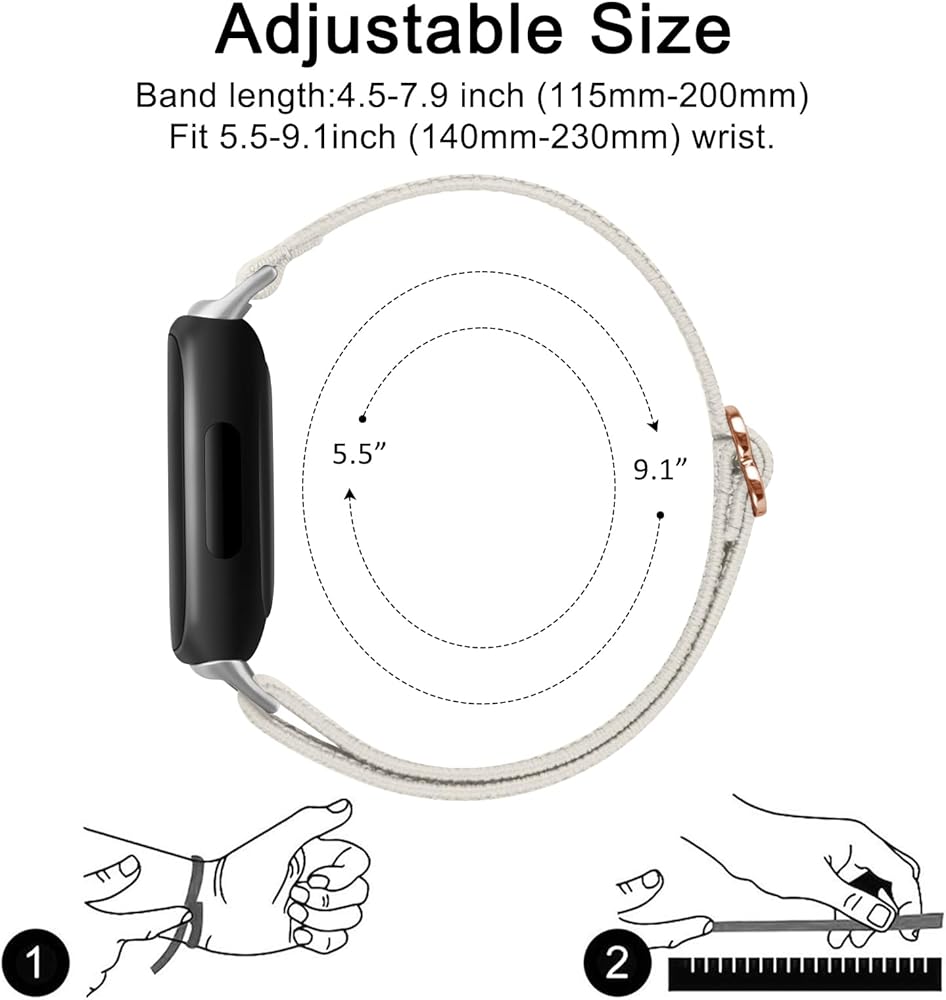 Fit Wrist Size : Meliya Elastic bands for Inspire 3/Inspire 2/Inspire bands with adjustable buckle fit for 5.3in-9.5in (135mm-250mm) wrist of women men. One size design stretchy elastic fit for all wrist size, big wrist and small wrist both can find appropriate size. Simple and comfortable.