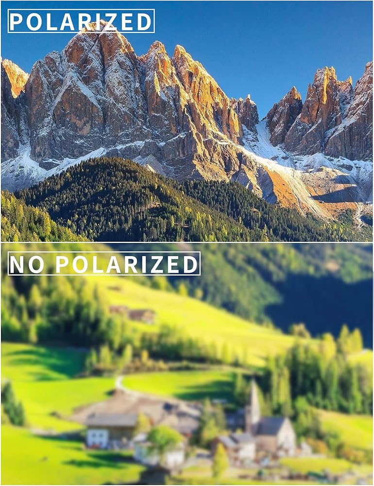 Advanced Polarization - Our lenses use advanced polarization technology to eliminate glare and enhance color contrast. Help you avoid distractions and temporary blindness caused by glare, and also help you see brighter scenes and more vibrant colors more clearly. Protect your eyes from long-term damage by blocking 99% of UV rays.