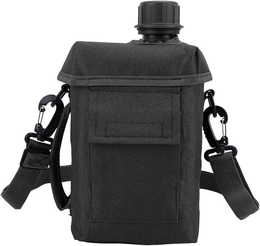 Outdoor - 2L Portable Water Canteen with Waist Bag, Multi Fuctional PVC Flat Camping for Surplus or Bushcraft Gear (Black)
