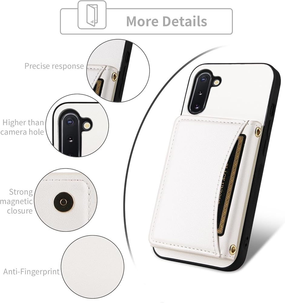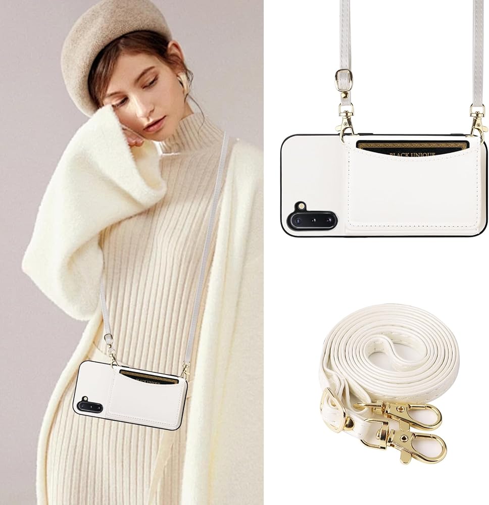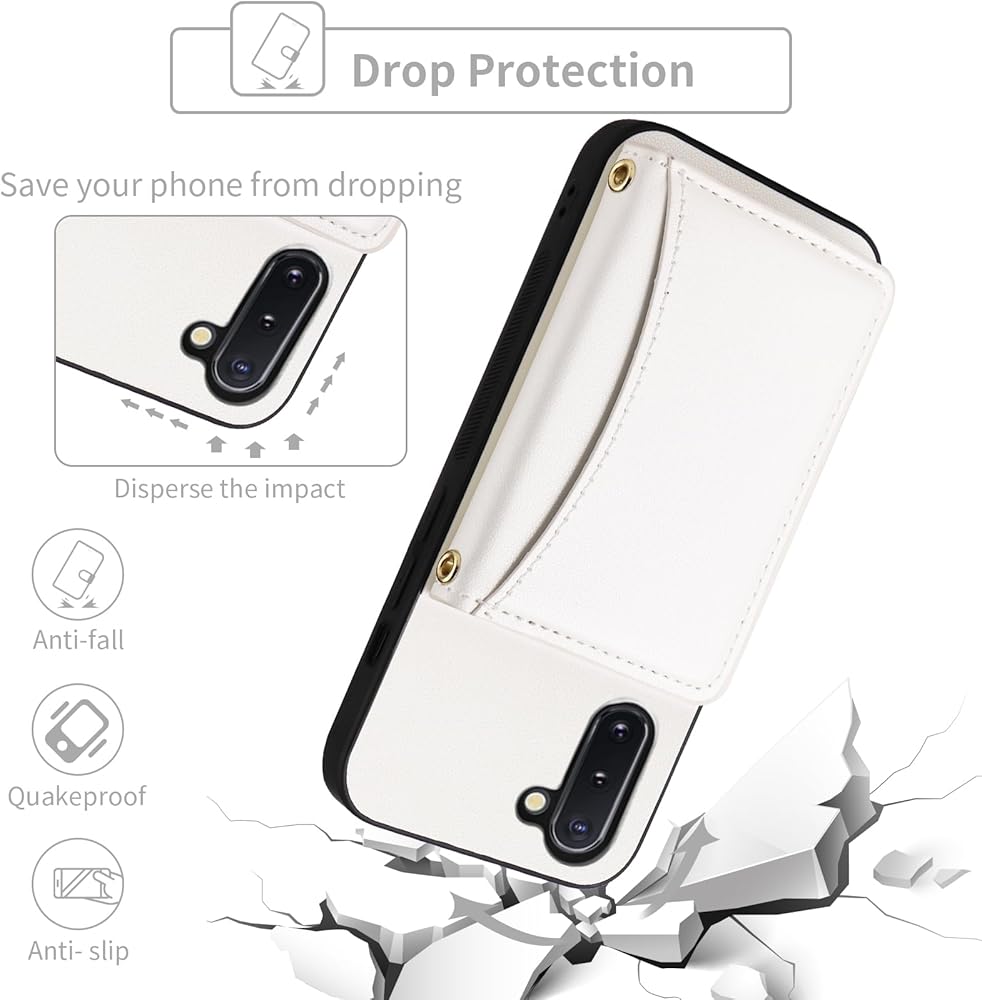 Wallet Case for Samsung Galaxy Note 10 5G with Crossbody Strap Premium PU Leather Card Holder Shockproof Heavy Duty Full Body Cell Phone Cover for Note10 Notes 10s Ten Not S10 Women Men White