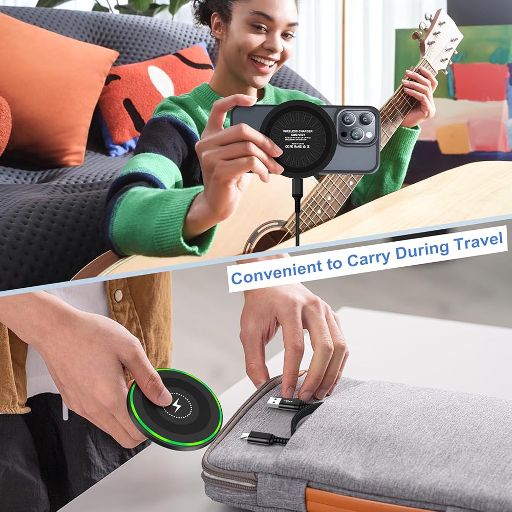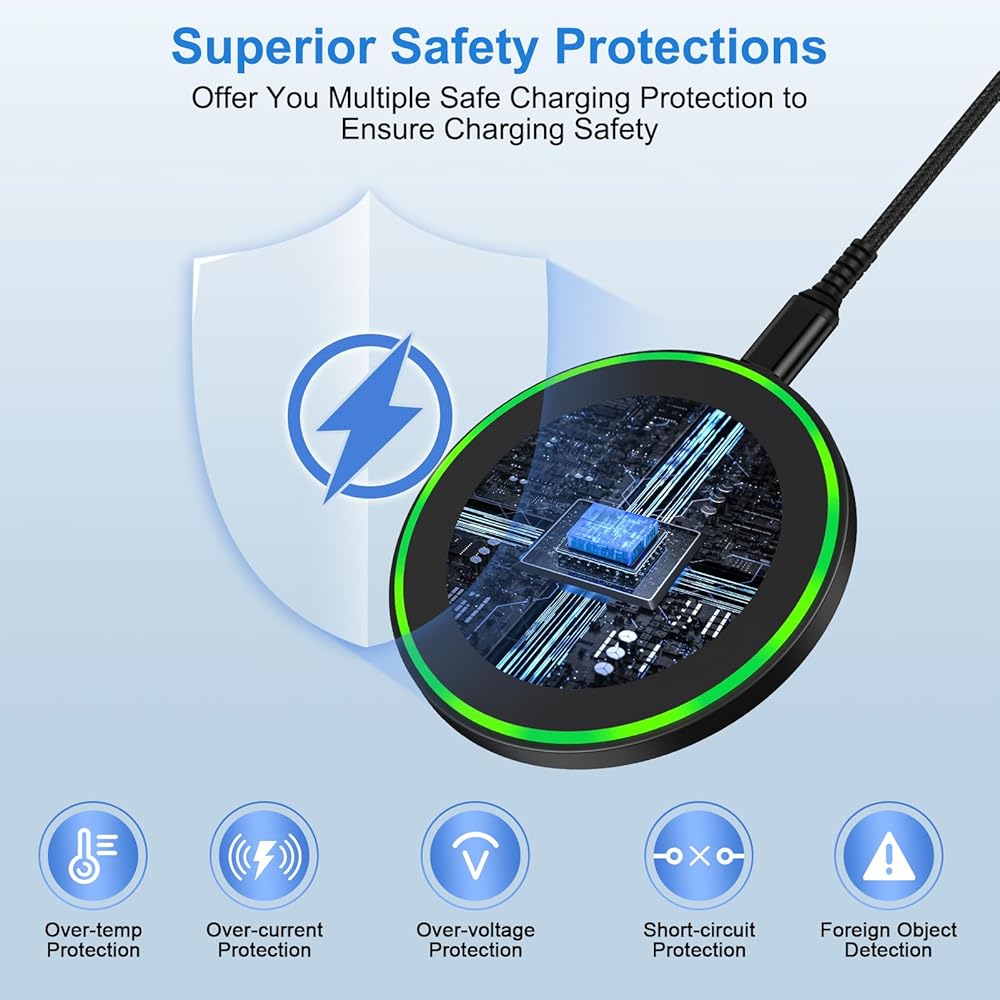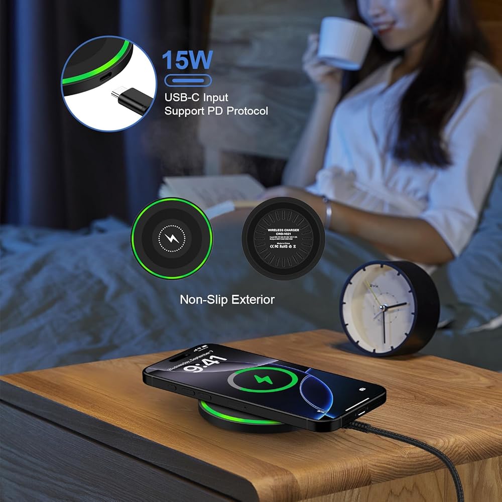 15W Fast Wireless Charger Pad with 3.3FT USB Type C Charger Cable for Fast Charging Your Phone and Keep Your Desktop Tidy