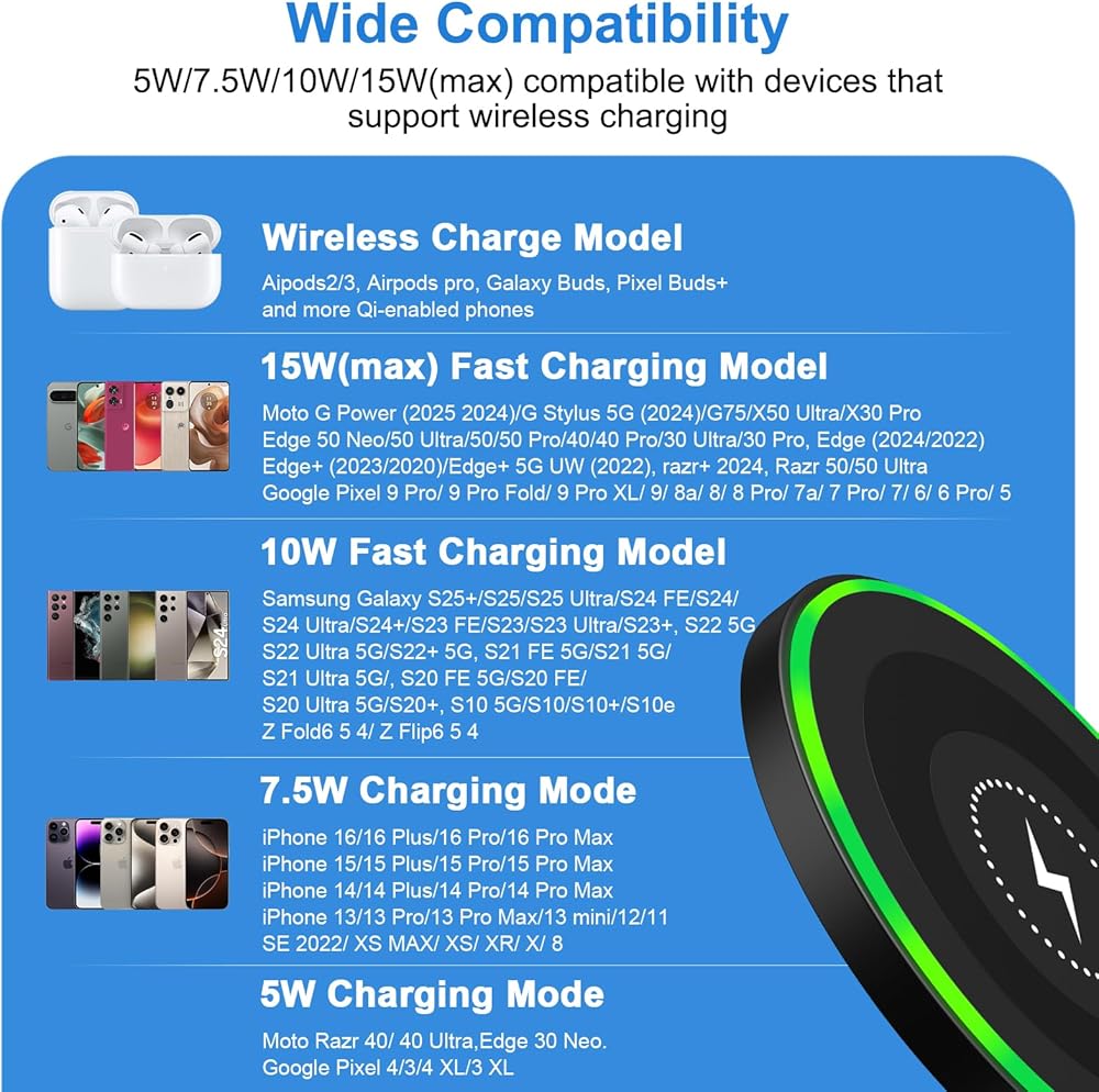 Fast Wireless Charger Wide Compatibility: