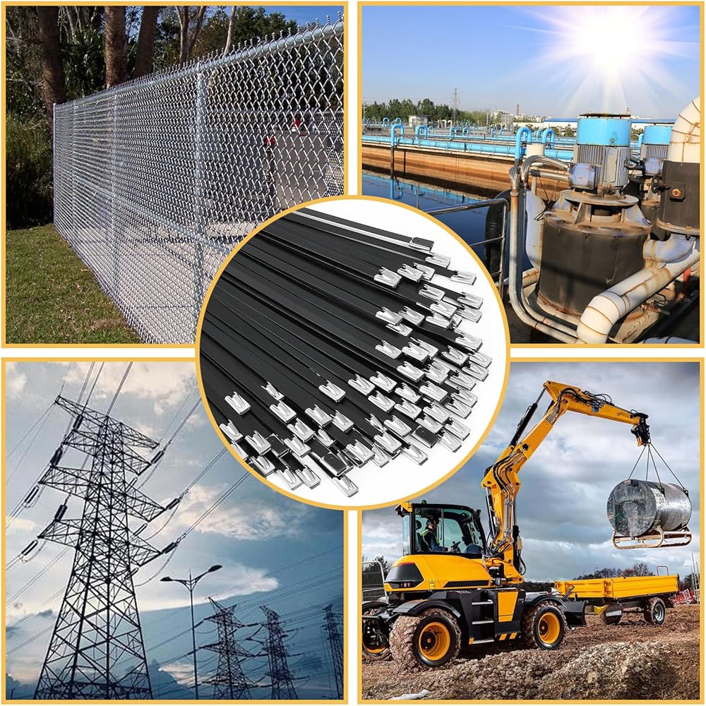 Ohiyoo Metal Zip Ties (300 PCS 11.8 Inch), 304 Stainless Steel, Heavy Duty Self-locking Cable Ties, for Exhaust Wrap, Chain Link Fence Parts, Wire Fence Rolls, Poultry Fence Outdoor