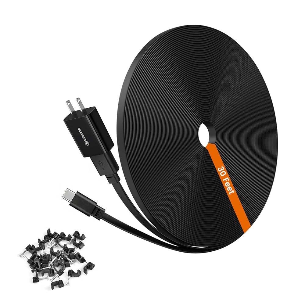 You can get: 1 pack 30ft longer enough type-c power cables, 1 pack 18W USB fast charger, and wire clips cale nails