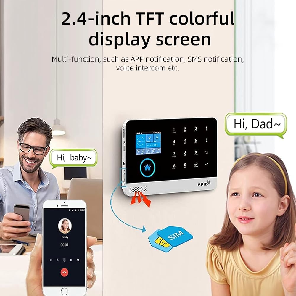 [ Easy to Install ]: Easy To Install panel with wireless sensors that can be integrated in short time with automated fast response alarms. Support up to 100 learing/storage/location for remote control, RFID cards and wireless detector as you need; You can control this gsm alarm system Arm/Disarm/Voice Monitoring /Intercom by cellphone anywhere.