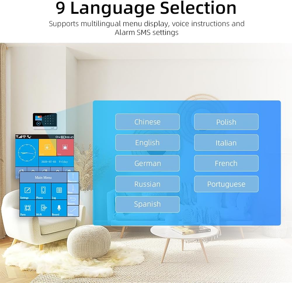 [ Timing Arm and Disarm Function ]: You can set timing arm and disarm by app or keyboard to avoid repeated operation. Also, a delay time can be set to avoid alarms caused by users leaving the site and passing through the deployed area. // Works with Alexa and Google, you can use voice to control your alarm system and intelligent household devices.