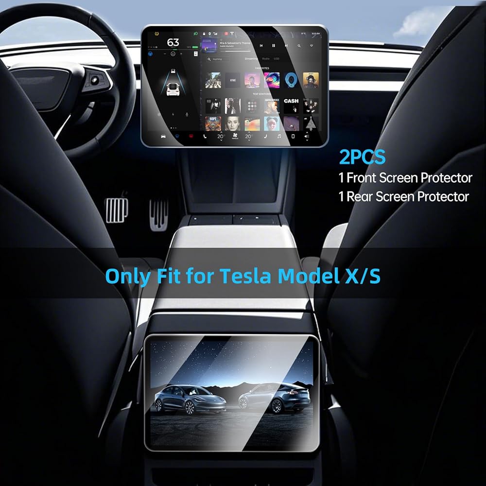 Screen Protector for Tesla Model S 2026-2023 Model X 2026-2023 with Alignment Kit, Front Back Tempered Glass TouchScreen Dashboard Protective 9H Hardness Anti Glare Fingerprint HD Clear