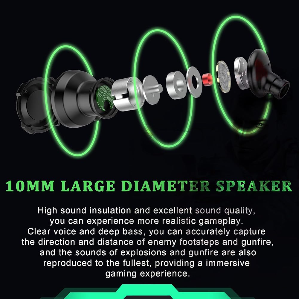 [Ergonomic Design] : The cavity is made based on large data of cochlea. It's scientifically molded to fit the ear like a customized in-ear Headphone. Even with vigorous exercise, it will still securely fit in the ear, Equipped with three ear tip sizes for a secure fit, ensuring they stay in place. The flexible material reduces discomfort from prolonged wear, eliminating heat and weight for a more comfortable gaming experience.