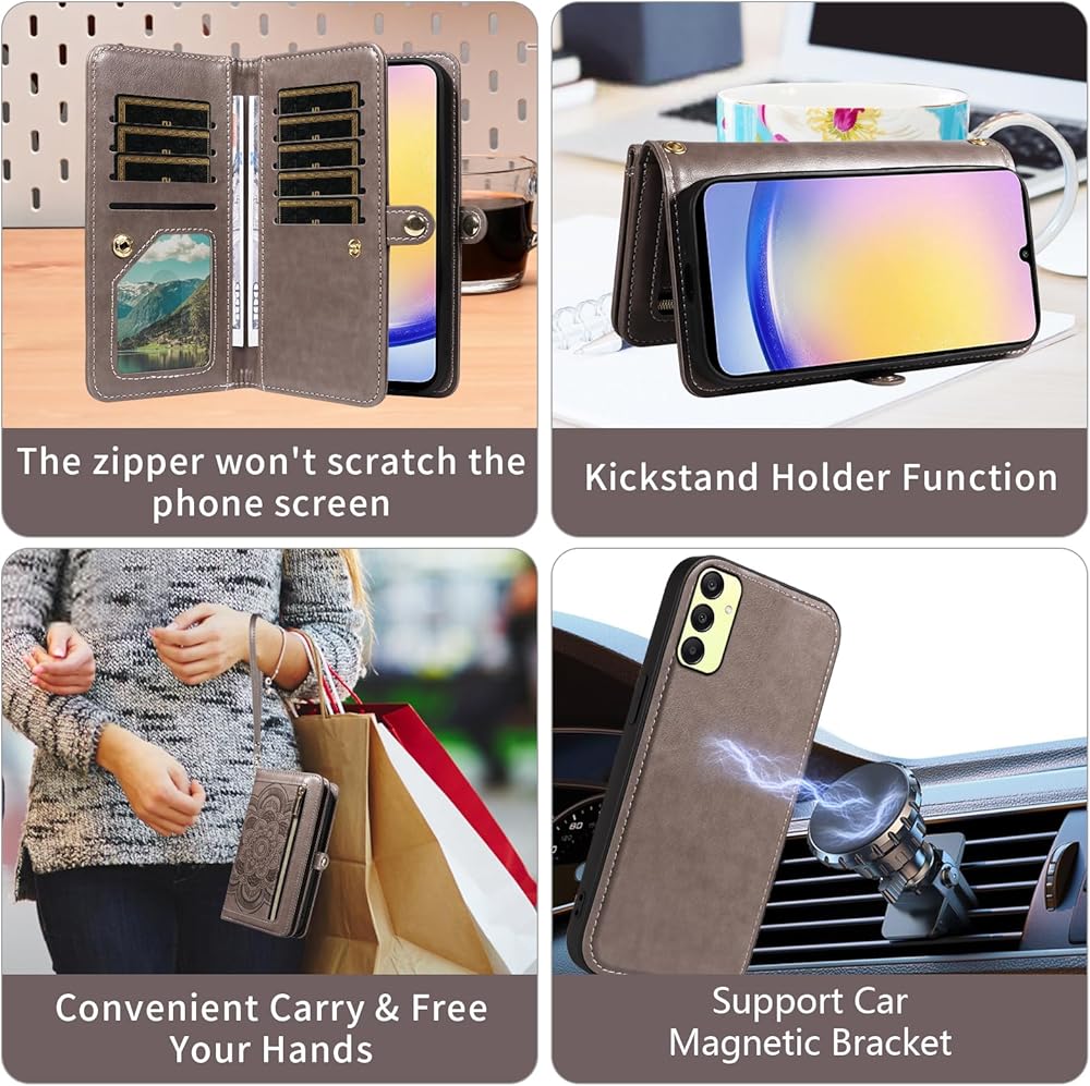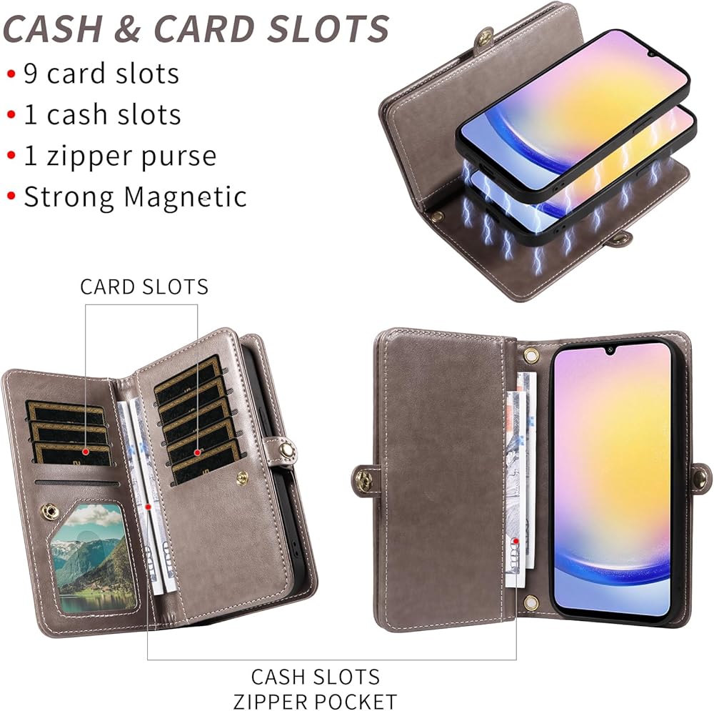 【Card Slots & Zipper】: This case includes 9 card slots + 2 cash slots + 1 zipper bag, hold your ID,credit cards,driver license,bills,coins,key and a little bit cash without problems.