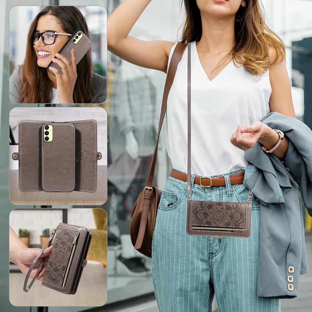【Package includes】: We will send the phone case with 1 piece tempered glass screen protector + 1 detachable wrist strap + 1 detachable crossbody strap.