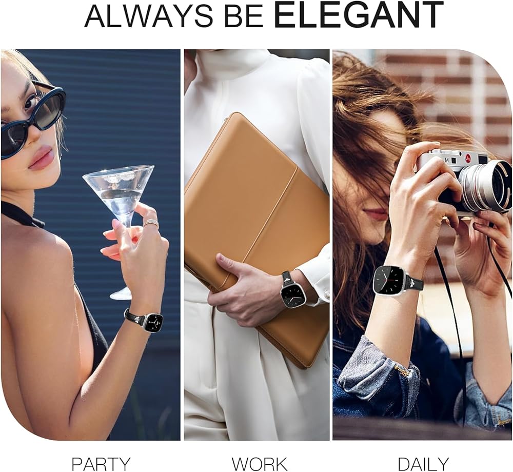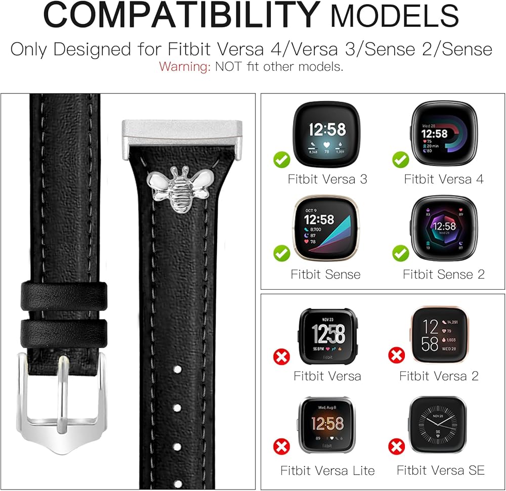 Compatible Models:Our slim leather strap is adjustable to fit wrists from 5.3“ -7.4” (135mm-190mm), easy to put on and take off, only compatible with Fitbit Versa 4/Versa 3/Sense 2/Sense bands. Note: The watch is not included