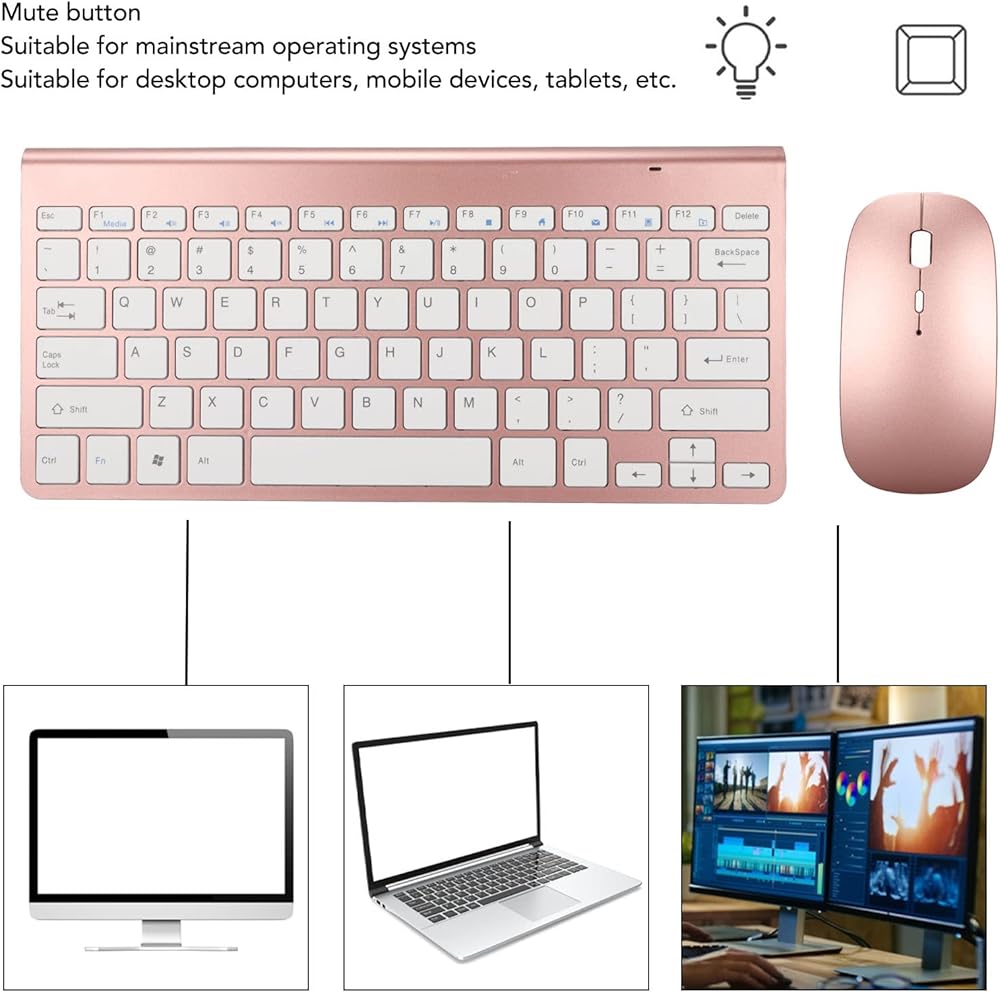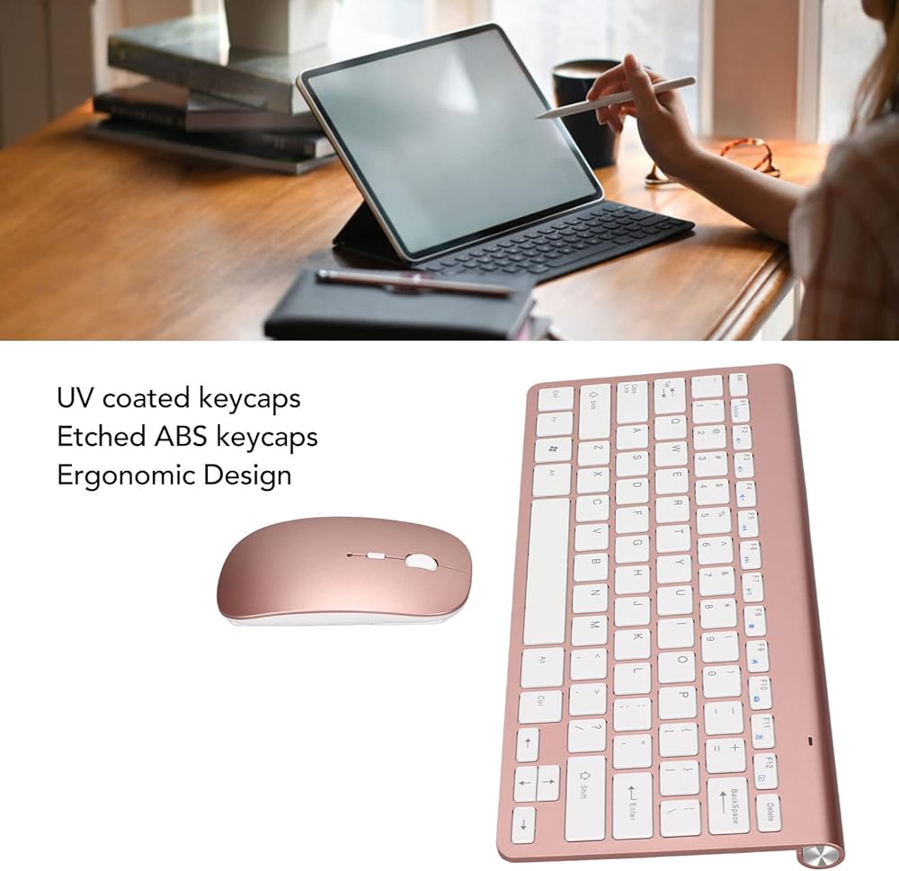 QUIET AND EFFICIENT TYPING EXPERIENCE: Enjoy comfortable and silent typing on this compact and portable cordless keyboard, featuring a responsive and quiet key press. The keyboard and combo includes an auto-sleeping mode and on/off switches to help conserve battery power, providing a seamless and efficient user experience.