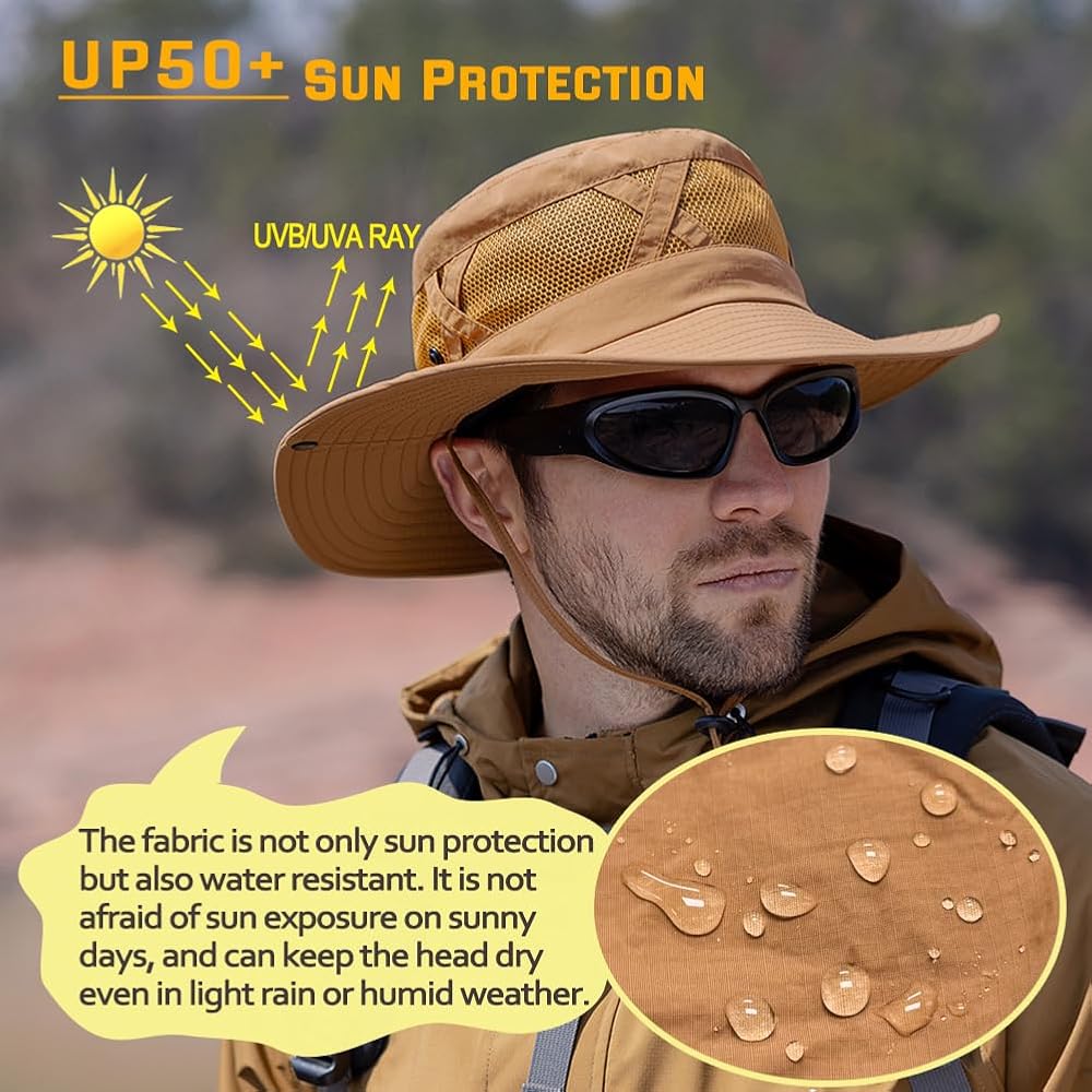 USE OCCASIONS: This wide brim hat is good choice for fishing, hiking, hunting, gardening, beach, camping, boating, Canoeing, Outworking ect...