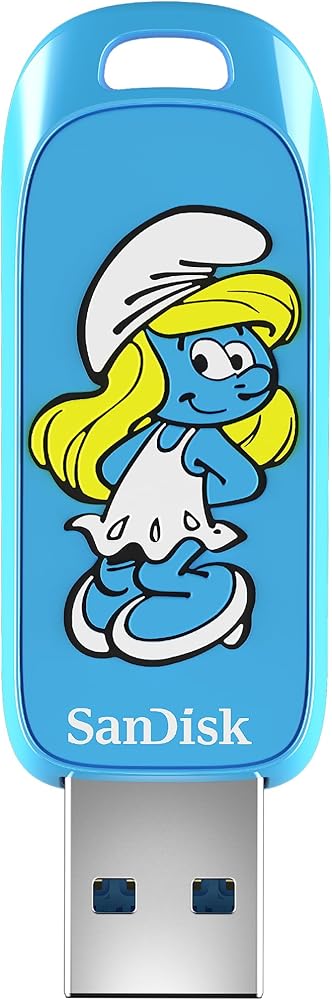 Great Smurfness! Store, share and showcase your Smurfy style with three new, limited-edition SanDisk Smurfs USB Flash Drives. Whether you're a Brainy Smurf, a Smurfette, or a Papa Smurf, there's a drive for the Smurf inside you. These Smurfs-themed drives include a redemption code for The Smurfs: Mission Vileaf video game with purchase(3), limitations apply. Expand your storage up to 256GB(1) so you can save your favorite videos, photos, games and more. And with read speeds up to 130MB/s(2), you can transfer large files quickly. Smurf longer, Smurf faster, and Smurf more with SanDisk Smurfs USB Flash Drives!