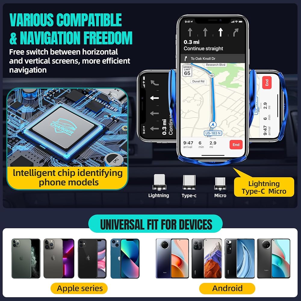 【Universal Compatibility and Dual Modes】Intelligent chip to identify various phone models, compatible with iPhone 16/15/14/13/12 Pro Max/Xs/X, Samsung Galaxy S24 Ultra/S23/S22/S21/S20/Note 20, Google, LG and other main stream smart phones. With dual mode by wireless charging and direct magnetic charging (with 3 magnetic connection head: Tpye-C, Lightening, Micro)