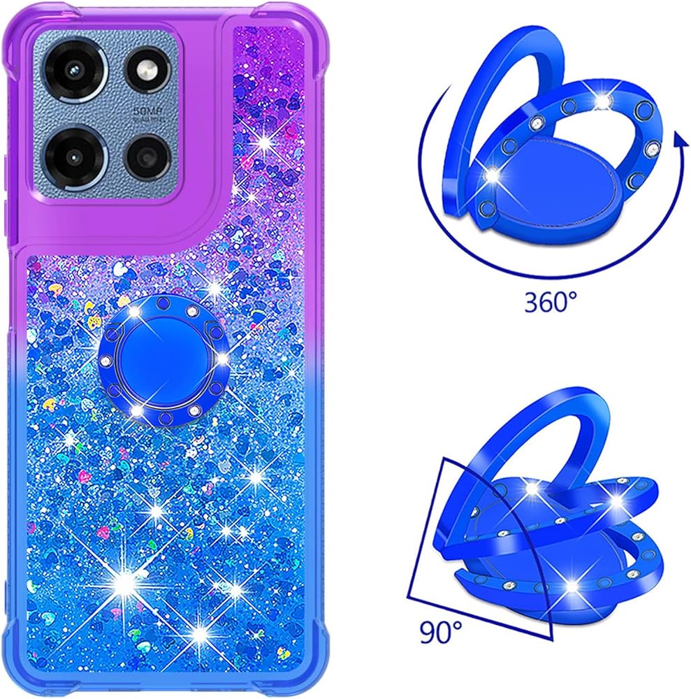 Glitter Ring Stand & Kickstand: Adjustable ring holder design convenient for you to watch videos and movies. Prevent your Moto G Stylus 5G (2025) from accidental drops and slips.Also kickstand offers multiple adjustable angles (360-degree horizontal and 180-degree vertical)