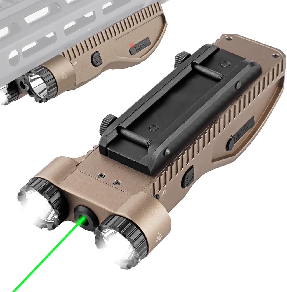 Versatile: Green Laser/Light/IR Combo compatible with mlock and Picatinny rails for rifles and carbines.